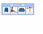 Make a transition strip. Make transitions easier. Put velcro on the 3 empty squares before "check schedule" adapt the pictures on the 2nd page to personally motivating pictures for the intend user.