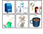 Flashcard activity that shows text and/or picture on one side of the card, then on the other side.